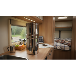 The AquaHouse Gravity Water Filter system is portable and simple to use. Sits conveniently upon a worktop or stand without any plumbing or electricity required. The water poured into the top chamber of the system is filtered by the AquaHouse Ceramic Gravity Filter cartridges as it flows through to the lower chamber which acts as a reservoir holding up to 8 litres of filtered water. The filtered water can then be dispensed using the spigot tap. Ideal for providing drinking water for 1-4 people per day.