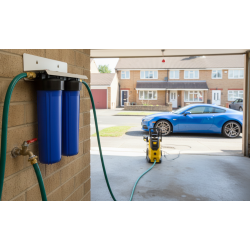 By using two large pods of high quality filter media the system can be used directly with domestic electric pressure washers up to 6 litres per minute, or directly with the hose spray.