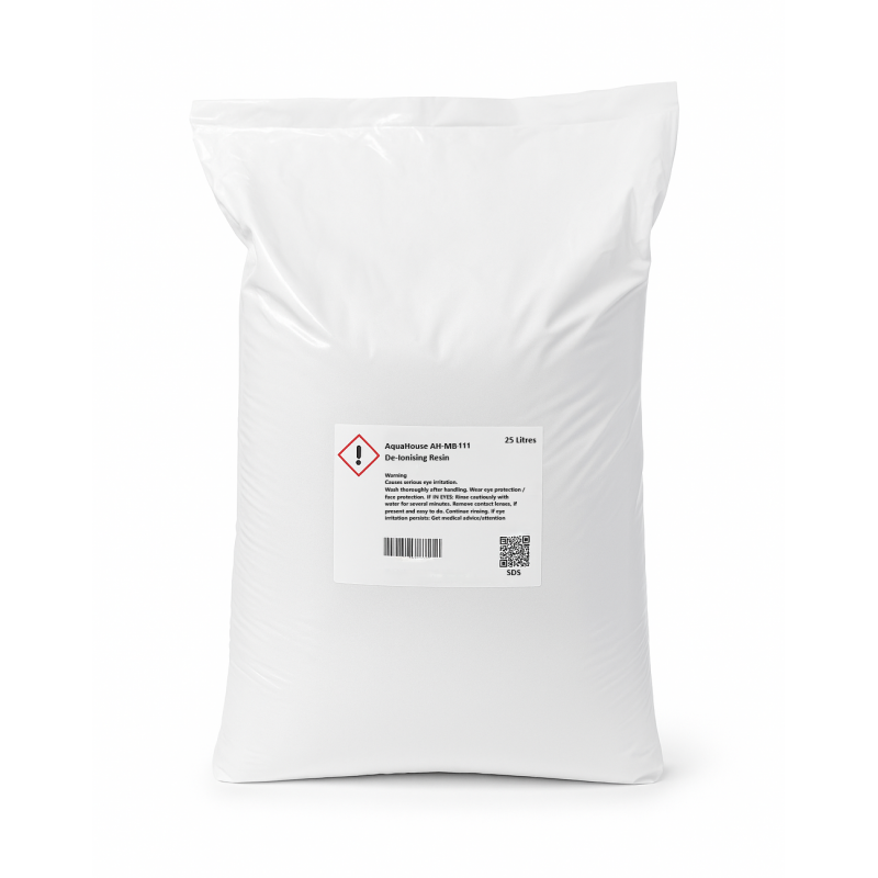 AquaHouse AH-MB-111 Virgin Mixed Bed Deionising resin for pure water production. Ideal for any general pure water production use including window cleaning, aquatics, etc. Typically used after a reverse osmosis system to produce deionised water with 0 TDS, or without pre-filtration to produce 0 / low TDS water in small batches.