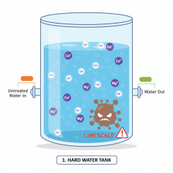 | In an untreated hard water supply, the hardness minerals such as calcium form calcium carbonate - rock hard deposits we know as lime-scale. | The polymeric template beads attract the mineral ions on a molecular level in a process known as Template Assisted Crystallisation (TAC). |