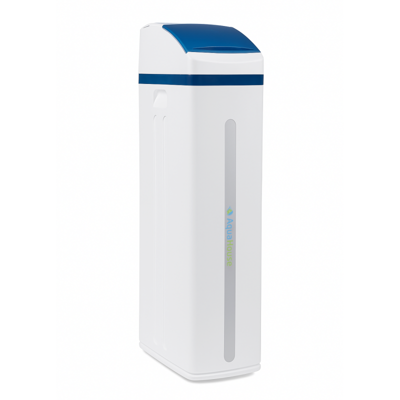 AquaHouse 21 Litre water softener system for complete scale prevention. Suitable for large households and commercial use, the slim design fits neatly into tall cupboards and in utility rooms. Metered water softener for the most economical and efficient use. Includes integrated bypass valve. The softener can be programmed to automatically regenerate when needed based on your water hardness and usage.